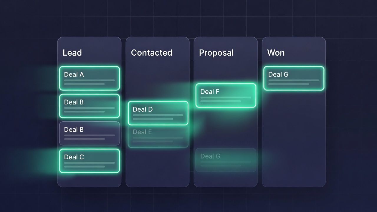 Automation: Assign tasks when a deal moves, send follow-up emails on triggers, notify team members on events.